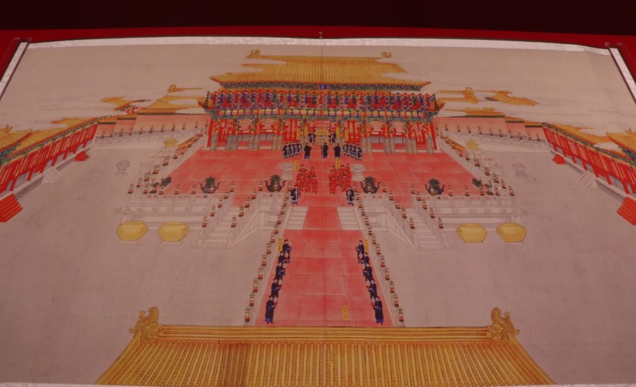 展厅里的故宫剪影落满时光纹路,红墙黄瓦叠着飞檐翘角,每一寸弧度都藏着中式美学的极致浪漫。戏曲纹样嵌在展陈细节里,水袖轻扬的剪影与中轴线的对称肌理相映,唱词里的家国情怀,恰是中轴线规整布局里的文化根脉——朱墙围合的不仅是宫阙楼宇,更是代代相传的礼仪秩序;戏文吟唱的不只是悲欢离合,更是华夏儿女的精神图腾。
