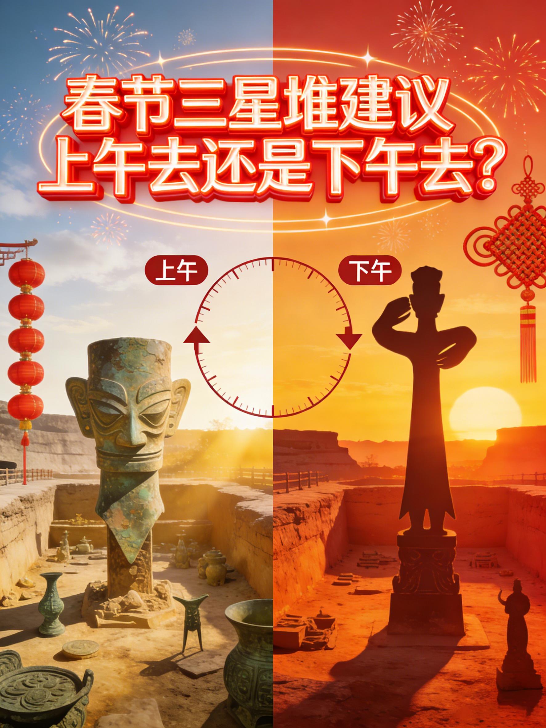 春节是三星堆客流峰值期,单日超万人次,优先选上午,优势显著:一是人流稀疏,8:30开馆即入场,避开10点后旅游团,可在镇馆之宝前从容观赏拍照;二是精力匹配度高,上午精力充沛,能更好跟上讲解节奏,下午拥挤易疲惫;