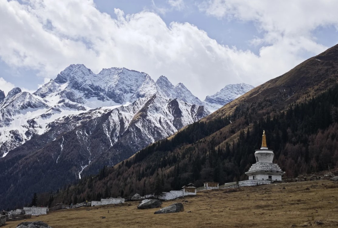 中午12.00之前到,在山脚下先一块拼桌吃了个饭,物价小贵但来都来了。景区最高点双桥沟海拔3800,轻微高反,主要体现在头疼虚弱和极度饥饿,需要走路比较多的话最好备一瓶氧气和葡萄糖越多越好。视野最好的是布达拉峰,需要从最高点红杉林往下坐一站后,再走路返回1km处最佳。
